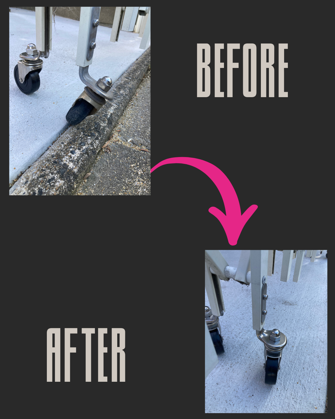 経年劣化により変形したキャスターを交換させていただきました。開け閉めが楽になりました。