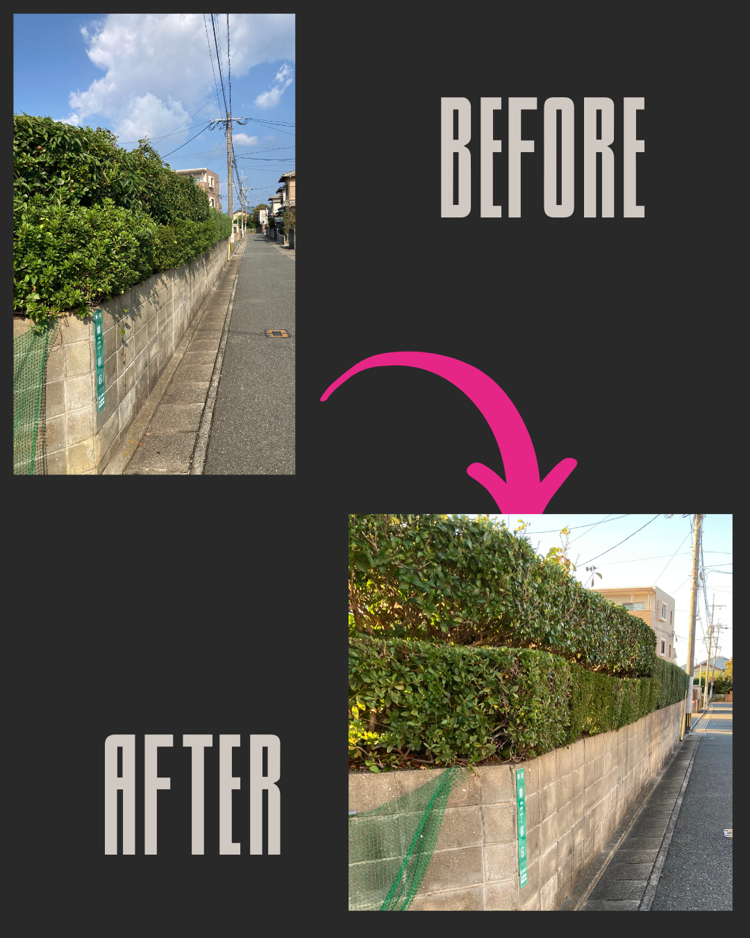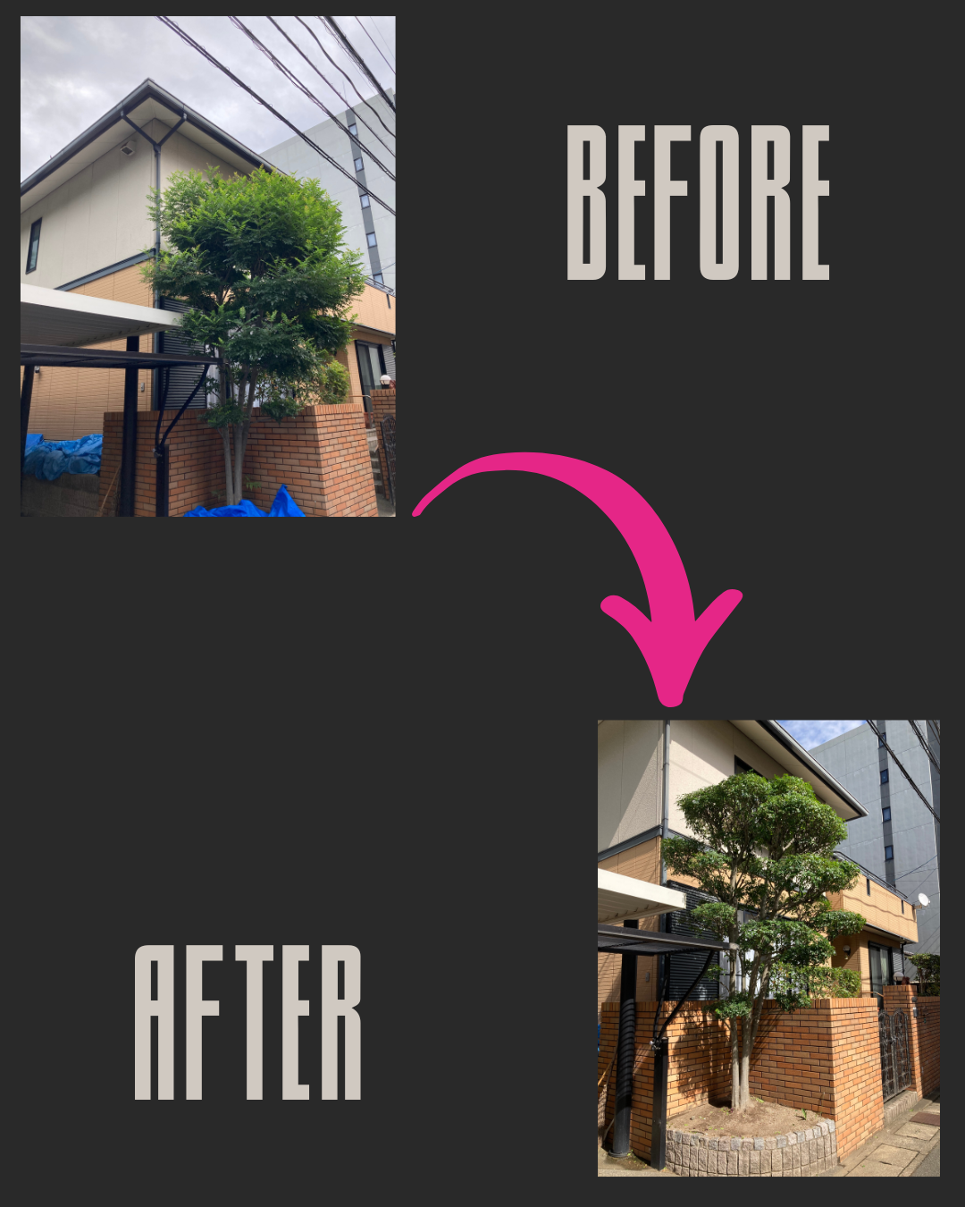 背の高いトネリコの剪定をさせて頂きました。形を崩さずに剪定して欲しいとの事で、伸びた枝をカットし、風通し良くするため透かし剪定を行いました。