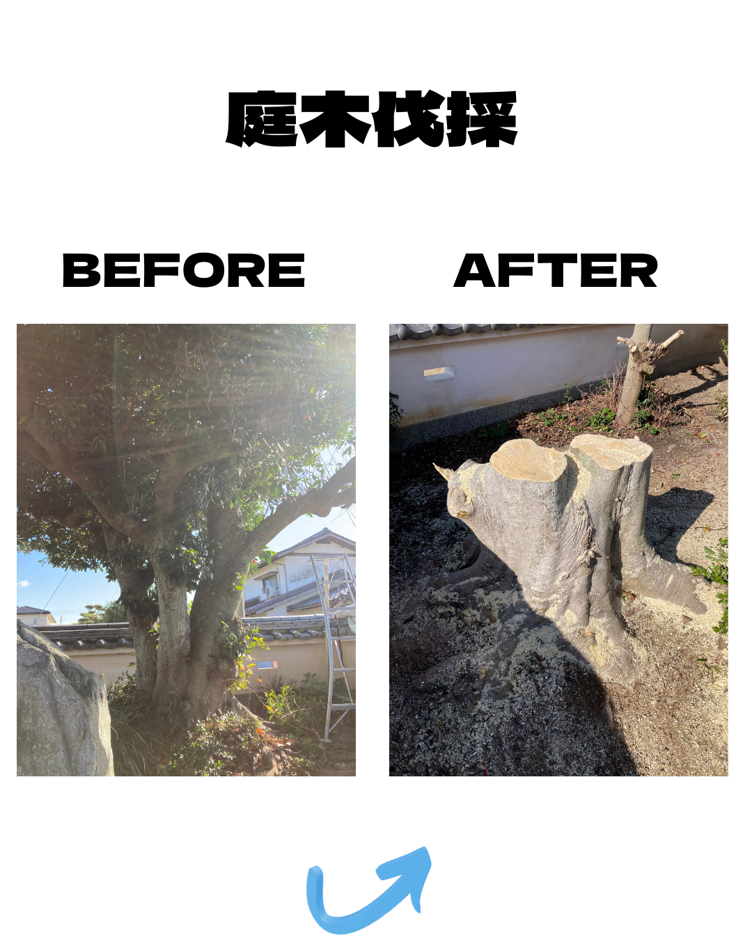 個人宅の庭木にしてはかなり大きな木の伐採をご依頼いただきました。高さ5m以上、太いところで幹の直径が50cm以上あり伐採後の運搬等が大変でしたが、良い筋力トレーニングになりました(笑)大きくなりすぎると倒木、電線トラブルなどの危険もあるので早めに対処するのが賢明です。伐採でなくとも、剪定や芯止めなどでも対処可能ですので、ご相談ください。